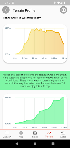 You will find detailed packing lists, info on every day of walking, itineraries, yummy recipes, a guide to flora, fauna, geology, travel planning, 1st aid and much much more. There is also a navigation section with topographic maps that will work offline, photos, terrain profiles, track notes and weather forecasts.